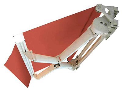 Tenda a bracci rinforzati su doppia barra quadra 40×40 armatura per grandi sporgenze.