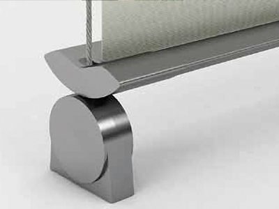 Tenda a caduta verticale, completa di cassonetto tondo e guidata da cavetti in acciaio.