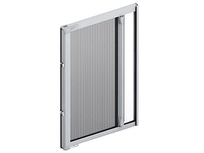 Zanzariera ad avvolgimento a molla a scorrimento laterale con cassonetto da 32 mm.